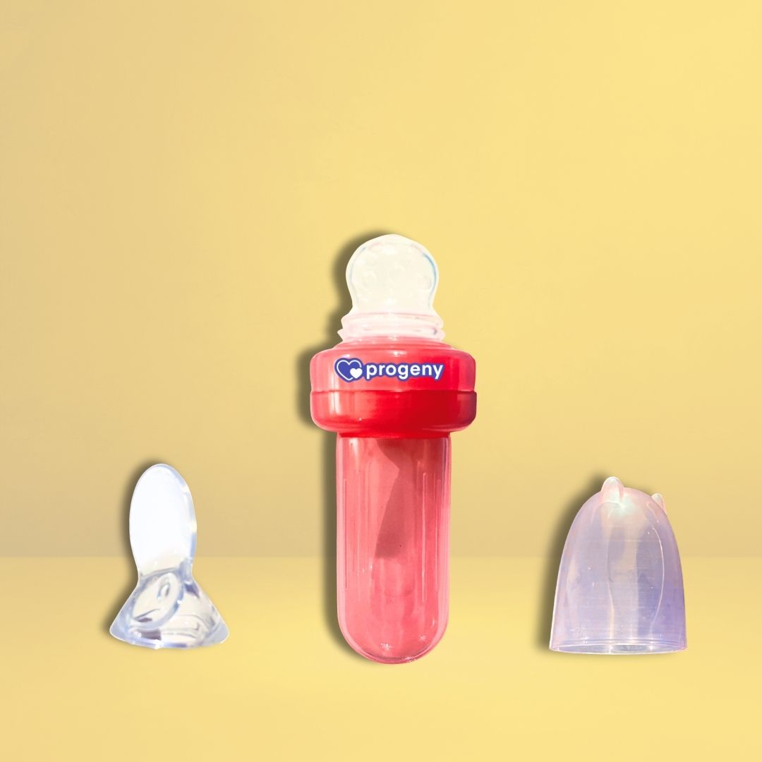 Food Feeder/Nibbler | Two in One | 90ml Capacity for Babies 4M+ | Premium Soft Silicone Food Grade BPA Free, Infant, Kids (Red)