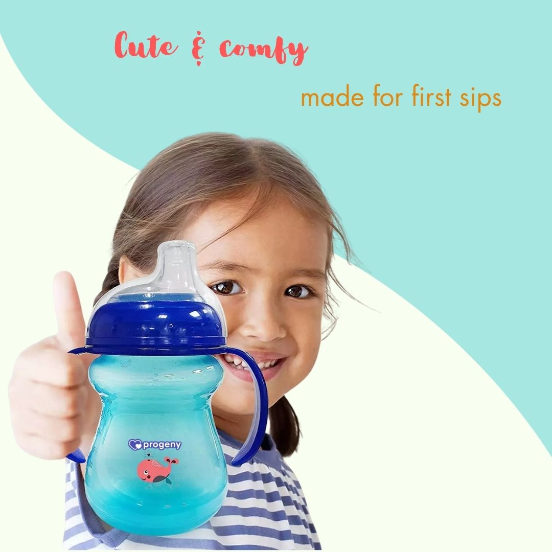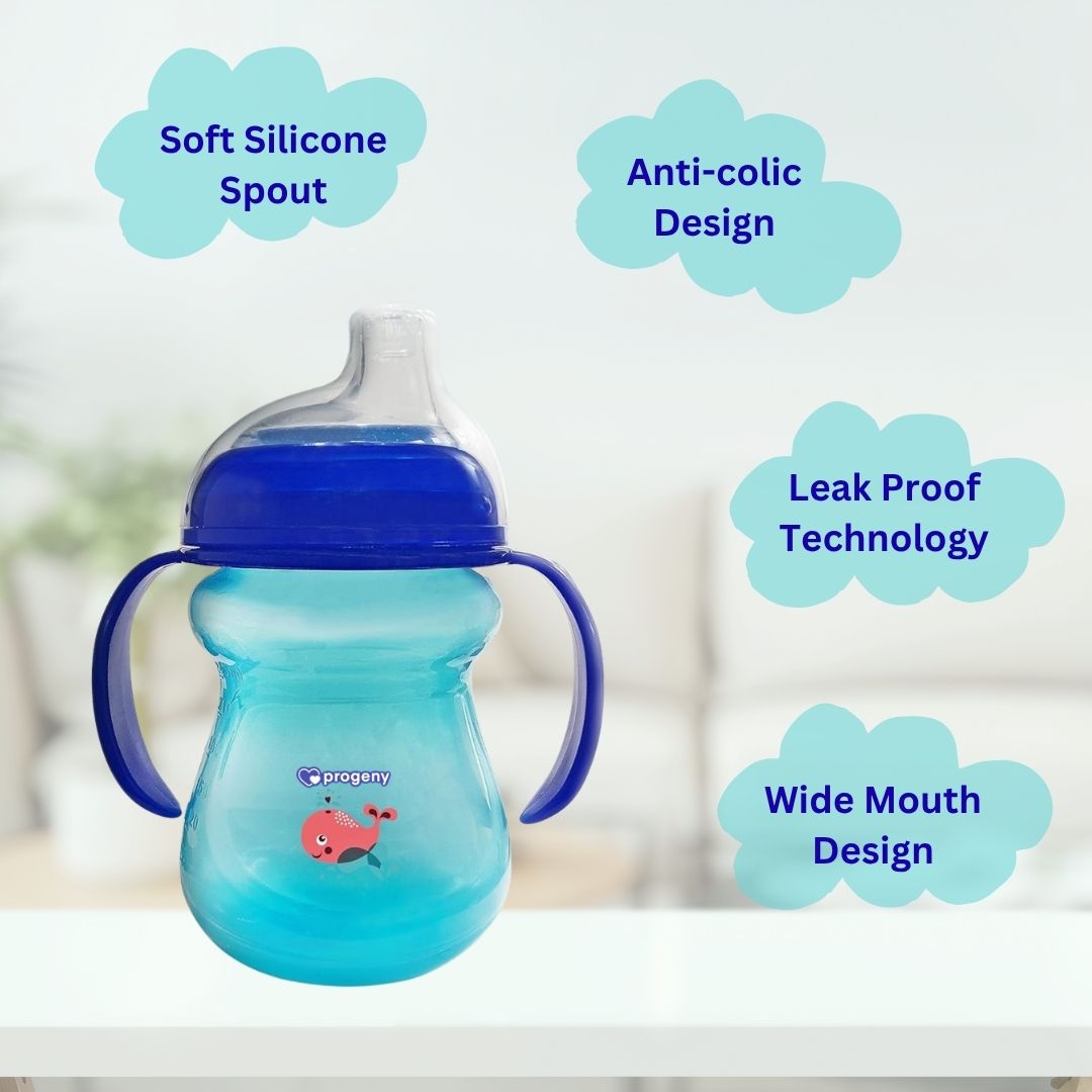 Silicone Classic Soft Spout Cup with Handles | 240ml | 6m+ | Anti-Spill | Soft Silicone Spout | BPA Free| Deep Blue